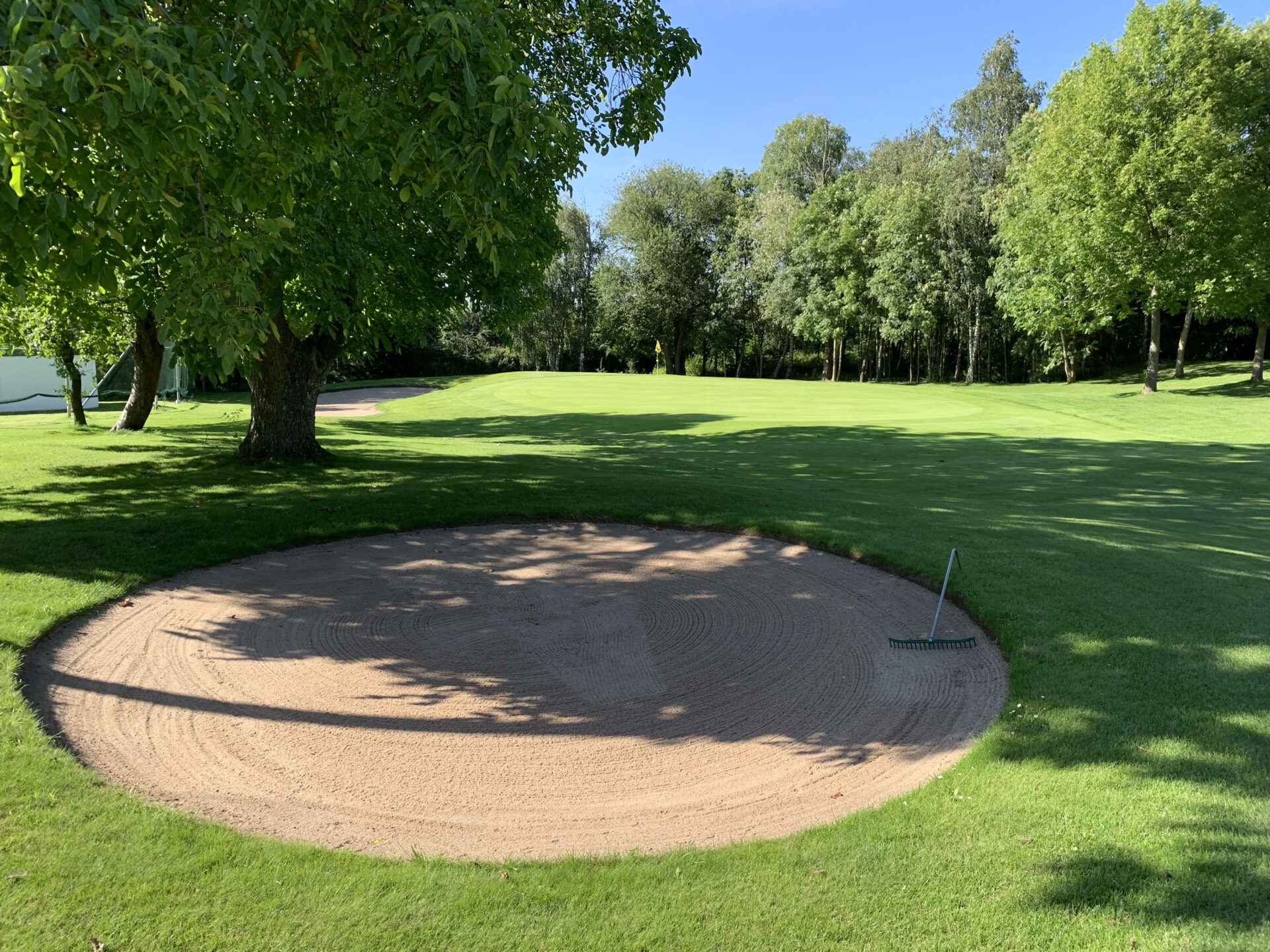 Loch 6: Die landwirtschaftlich genutzte Fläche entlang der linken Seite der Bahn darf nicht betreten wer-den! Ein Betreten der Fläche wird als schwerwiegender Verstoß gegen die Etikette und mit Disqualifikation und Platzsperre geahndet.
